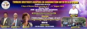 Tumaini Brother’s Keepers in Conjunction with P.C.E.A Nyaga Parish Cordially invites you for a 7 Days of Mission Work starting on 4th – 11th August, 2024.